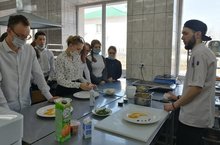 Зарипов Азат, выпускник 2018 года, провел со студентами 22а, 32 группы мастер- класс по приготовлению утиной грудки с тыквенным муссом с апельсиновым соусом и грушей.