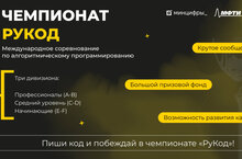 Международный чемпионат по алгоритмическому программированию «РуКод» — это возможность проверить свои знания в области алгоритмов, получить дополнительные баллы на ЕГЭ или усилить своё портфолио, а также побороться за призы. Чтобы присоединиться к соревнованию, подайте заявку на Госуслугах https://www.gosuslugi.ru/landing/RuCode