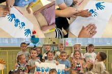 Цвета Российского флага означают добро и красоту; белый цвет – снег, облака, синий – небо, реки и моря, красный – огонь. В закреплении о цветах флага сделали совместную работу, а именно флаг из отпечатков рук. Дети были увлечены процессом, им очень понравилось. -