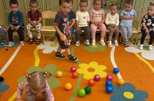 [Сегодня во второй группе раннего возраста «Солнышко» была проведена дидактическая игра «Разложи шары по цвету». Цель этой игры заключается в тренировке внимания детей, умение работать в команде. Все дети активно принимали участие и помогали друг другу. Благодаря этой игре дети повторили цвета и научились верно раскладывать шары по заданной схеме.