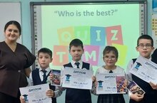 Наши ученики и в каникулы зря время не теряют. Сегодня, 31 октября, в Арском Дворце школьников состоялась городская игра-викторина по английскому языку "Who is the best?". В игре приняли участие 7 команд. Наша команда «Quizzy Minds» завоевала 3 место. Поздравляем учеников!!!