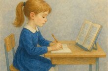 Тетрадь и книга: Учебник лучше поставить на подставку, а тетрадь расположить под углом 30° относительно края стола. Это помогает держать голову ровно.