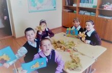 Әйләнә-тирә дөнья дәресендә башлангыч класс укучылары көзге табигатьне күзәтеп, төрле яфраклар җыеп кайткан иде. Ә бүген шул яфраклардан аппликация,букет ясадылар. Гади генә яфраклардан нәрсә генә ясап булмый?! Балаларның фантазияләре көчле. Бик матур итеп кешеләр, балыклар, хәтта әтәч тә ясадылар. Букетлары да искиткеч матур килеп чыкты. Ахырдан һәр эшкә анализ ясалды.