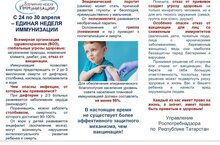 С 24 апреля по 30 апреля 2025 году пройдет Единая неделя иммунизации (ЕНИ-2025) в Республике Татарстан, направленная на повышение осведомленности населения о профилактике инфекционных заболеваний с помощью профилактических прививок, которая еще раз подчеркивает значимость вакцинации для обеспечения здоровья и благополучия людей.