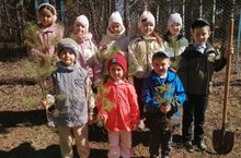 На неделе посадки деревьев не остались в стороне ученики начальных классов и воспитанники детского сада. -