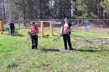 Сегодня на уборку и благоустройство территории вышли педагоги и учащиеся. Они спилили старые деревья, обрезали сухих ветви, выкорчевали корни спиленных деревьев и отвезли весь мусор на свалку. После такой напряженной и упорной работы территория школы стала светлой и просторной.