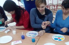 Воспитатель средней группы Миннебаева Г.М. поделилась со своими коллегами техникой "Волшебные краски" Т.Д. Зинкевич-Евстигнеевой. Также продемонстрировала использование элементов сказкотерапии в процессе рисования. Данная техника направлена на гармонизацию эмоциональной сферы, на развитие творческих способностей, на развитие коммуникативных способностей. Техника очень удивительная и сказочная! Творя, человек испытывает прилив сил, актуализируются его ресурсы, мир становится прекрасней.