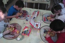 Дети с удовольствием учились и выполняли приемы росписи. В конце занятия у детей получились яркие, необычайно красивые, симпатичные тарелочки, на которых дети проявили свою фантазию и умение работать красками в процессе народного творчества.