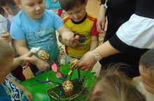 В нашем ДОУ стало традицией осенью проводить выставки совместных работ. Младшая группа №14 предложила родителям совместно с детьми сделать красивые и необычные осенние поделки из природных материалов. Целью проведения выставки «Волшебная осень» стало желание развивать совместное творчество детей и родителей, побуждать их к активному участию в жизни детского сада.
