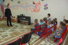 В нашем детском саду ведется большая работа по формированию у детей основ безопасного поведения на улице. Сегодня в гостях у средней группы №6 побывал старший лейтенант полиции. Он объяснил и показал правила передвижения пешеходов по тротуару. Выйдя к проезжей части дороги, объяснил правила перехода через улицу, правила поведения детей на дороге. Старший лейтенант полиции рассказал ребятам о необходимости носить на верхней одежде светоотражающие элементы. Дети не только внимательно слушали его, но и задавали свои вопросы, на которые наш гость отвечал с удовольствием. Такие визиты детям очень интересны, так как они в увлекательной форме закрепляют правила дорожного движения.