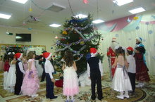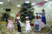 Центр новогоднего празднества -- сверкающая огоньками и игрушками елка. Красота ели обычно настолько захватывает детей, что праздник может начинаться только с нее. Главная цель такого праздника -- показать счастливую жизнь детей, достигнутые ими успехи в развитии.
