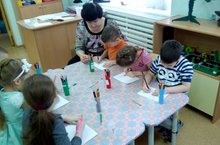 Дети средней группы № 8 очень любят рисовать. Поэтому сегодня мы с ними занимались нетрадиционным видом рисования - пальцевой живописью. Ребята с любопытством, радостью и удовольствием рассматривали свои цветные пальчики, показывали их товарищам, оставляя следы на бумаге. Пальчиковое рисование - это не только интересно и весело, ну и полезно. С его помощью развивается мелкая моторика, ребенок получает представление о том, что такое цвет, какие бывают цвета, а также о том, что, смешивая две разных краски, можно получить совершенно новый цвет.