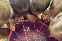 Сегодня с детьми младшей группы провели беседу на тему: "О пользе свежего воздуха", так же эксперимент. Сделав анализ, убедились, что воздух невидимый, бесцветный, без запаха, имеет вес. -