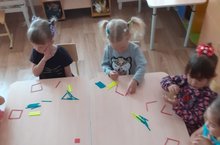 Наши самые маленькие воспитанники сегодня занимались со счётными палочками.Задачи: уточнить знание геометрических фигур;сравнение фигур по величине; выкладывание из счётных палочек силуэтов геометрических фигур;развивать внимание , память, логическое мышление и мелкую моторику .