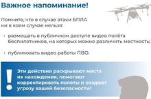 БПЛА һөҗүме очрагында пилотсыз очкычлар очышының видеоларын халыкка җиткерергә ярамый. Бу турыда кисәтүләр булып тора. Һәм һава һөҗүменә каршы оборона эшләү видеосын интернет киңлекләренә урнаштырмау мөһим. Бу аларның урнашу урыннарын ача һәм Татарстан Республикасы гражданнарының иминлегенә куркыныч тудыра.