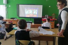 Бугенге көндә махсус операциядә катнашучы егетләргә 1 класс укучылары котлау открыткалары ясадылар