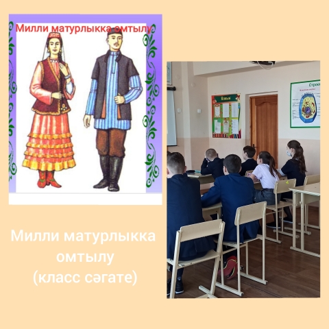 "Милли матурлыкка омтылу" дип исемләнгән класс сәгате кысаларында 7 класс укучылары татар халкының милли гореф-гадәтләре, йолалары белән таныштылар. Гаиләләрендә матурлыкны сөю, рухи байлыкка хәзинә итеп карау, аны саклау, үстерү, буыннан-буынга тапшыру һәр укучыда горурлык хисе уятты.Укучылар әлеге класс сәгатеннән үзләренә рухи азык алдылар -