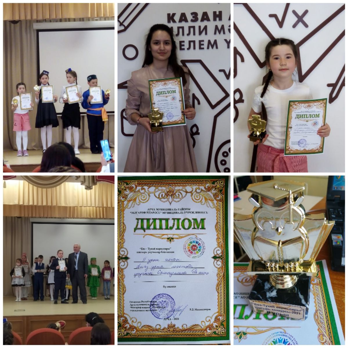 Г.Тукайның тууына 135 ел тулу уңаеннан “Моңлы сазым” районкүләм иҗат бәйгесендә мәктәбебезнен 5 нче сыйныф укучысы Гайнетдинов Илшат, 7 нче сыйныф укучысы Минҗанова Роза, 9 нчы сыйныф укучысы Галаветдинова Гөлфия унышлы чыгыш ясап кайттылар. Молодцы!! Котлыйбыз!!!