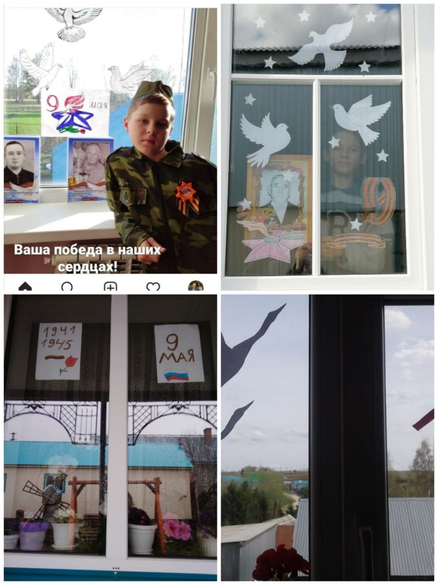 Мәктәбебез укучылары "Җиңү тәрәрзәләре" акциясендә бик актив катнаша. Тәрәзәләрен матур плакатлар. рәсемнәр белән бизәп, сугыш батырларын горурланып искә алалар. -
