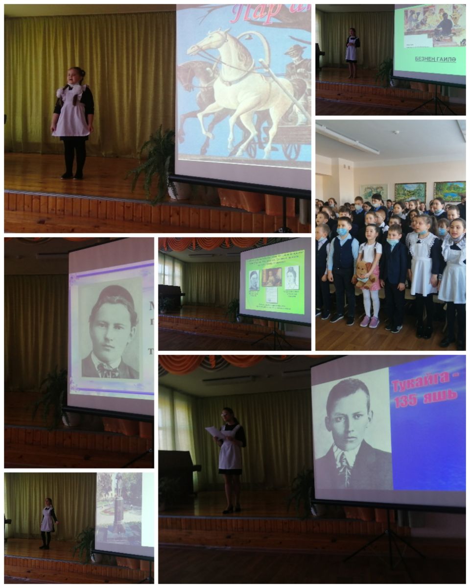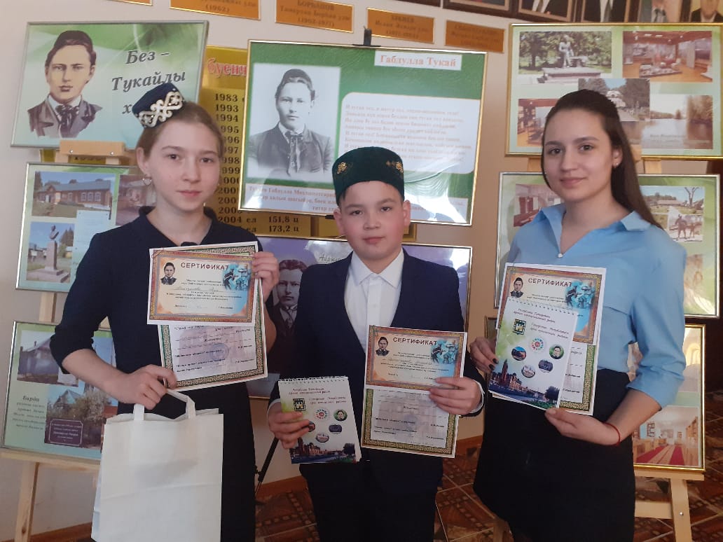 Г.Тукайның тууына 135 ел тулу уңаеннан "Без -Тукай варислары" районкүләм шигырь укучылар бәйгесендә мәктәбебезнен 1 нче сыйныф укучысы Самигуллина Ралинэ, 9 нчы сыйныф укучысы Галаветдинова Гөлфия 2 урыннарга лаек булдылар, ә 2 нче сыйныф укучысы Минзянов Риназ унышлы чыгыш ясап кайтты. Молодцы!! котлыйбыз!!! -