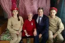 Юнармейцы нашей школы участвовали во вручении медаля ветерану тыла Ибрагимовой Фахризиган, в честь 75 -летия ВОВ