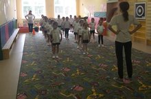 Самая главная ценность у каждого человека -это здоровье, поэтому в нашем детском саду большое внимание уделяется воспитанию здорового ребенка.Вырасти здоровым,крепким,сильным помогает спорт.Заниматься физкультурой полезно,а веселой физкультурой - вдвойне.Ведь каждая минута занятий спортом продлевает жизнь человека на один час,а веселым - на два, и даже с минутами."С физкультурой мы дружны!"- так назывался досуг,который прошел у нас в детском саду в спортзале.Участниками стали подготовительные дошкольники.Соревновались в силе, ловкости,смекалке,быстроте две команды -"Пчелки"и "Лягушата", а зрителями были студенты АПК.Бурю эмоций и массу впечатлений вызвала игра " Зайцы и волк".Дети получили удовольствие от совместных занятий фифзкультурой,заряд бодрости и массу положительных эмоций.Сегодня проигравших нет!Каждый участник одержал маленькую победу!Маленькую, но убедительную победу над самим собой!