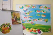 Сегодня в группе "Капелька" был насыщенный день. Мы беседовали на тему: "Что растет в саду" и вместе сделали красивый натюрморт из фруктов. Дети с удовольствием вырезали те фрукты которые они сами нарисовали и приклеили на основу. И конечно же после занятии все вместе поели яблоко, где есть витамины необходимы для здоровья