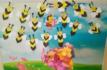 - Пчёлы очень трудолюбивые насекомые, они делают полезный для людей мед. Мед, который дают пчелы, не только сладость к чаю, но и полезный продукт, который применяют в лечении очень многих заболеваниях".Дети с удовольствием слушали беседу и узнали многого для себя. И у нас в конце получилось очень красивые пчёлы ????