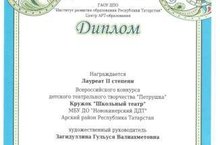 Воспитанники объединения "Школьный театр" (рук. Загидуллина Г.В.) стали лауреатами 2 степени во всероссийском конкурсе театрального творчества "Петрушка".Поздравляем их с победой!