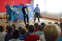 Ученики 5 класса, посещающие театральный кружок под руководством Ахуновой Л.А. показали кукольный театр для воспитанников младших групп.