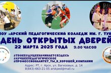 ГАПОУ «Арский педагогический колледж имени Г.Тукая» 22 марта 2025 года проводит День открытых дверей, где Вы сможете узнать подробную информацию о специальностях, по которым проводит обучение колледж, а также правилах приема в 2025 году. Вам проведут экскурсию по образовательной организации и и музею букваристики и азбучного искусства «Алифба». На мероприятии Вы встретись с администрацией колледжа и представителями приемной комиссии, которым сможете задать интересующие Вас вопросы.