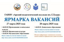 27 и 28 марта 2025 года на базе ГАПОУ «Арский педагогический колледж им. Г.Тукая» состоится ЯРМАРКА ВАКАНСИЙ.