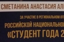 Поздравляем Сметанину Анастасию с успешным выступлением в региональном отборочном туре российского конкурса "Студент года -2016"