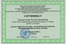 В Казанском электротехникуме связи 23-24 апреля 2014 года с большим успехом прошел Всероссийский научно–практический форум «Информационная среда: XXI век» с участием 187 студентов из 34 ССУЗов РФ и РТ. В рамках форума были проведены Олимпиады по различным секциям. Гайнетдинов Рифат, студент 2 курса группы «А» ГАОУ СПО «Арский педагогический колледж им. Г.Тукая», занял призовое III место в секции «Пользователь».