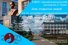 25 марта 2023 года - ГАПОУ «Арский педагогический колледж имени Г.Тукая» приглашает на День открытых дверей.