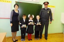 5 сентябрь көнне участок инспекторы Хисамиев Ленар Альтафович 1 класс укучыларына куркынычсызлык беләзекләре, яшь җәяүле дәфтәре, блокнотлар тапшырды. Бүләкләрне тапшырганчы, инспектор балаларга юлда йөрү кагыйдәләрен, беләзекләрне тагу тәртибен аңлатты.