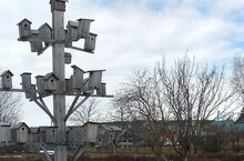 Интересное сооружение обнаружили во время экскурии.Целый городок для скворцов.