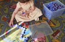 2) «Дорожки для пальчиков». Из крышек выложили дорожки разной сложности на полу. А затем ходили по ним, развивая координацию и тактильное восприятие.