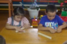 С большим желанием малыши играют в школу. Учат друг друга грамоте.