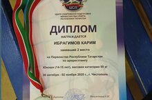 1 нче ноябрь көнне безнең мәктәпнең 7 нче сыйныф укучысы Ибрагимов К. кул көрәше буенча Республика ярышында (14 - 15 яшь) арасында икенче урында калды. Аңа киләчәктә зур уңышлар, зур җиңүләр теләп калабыз.