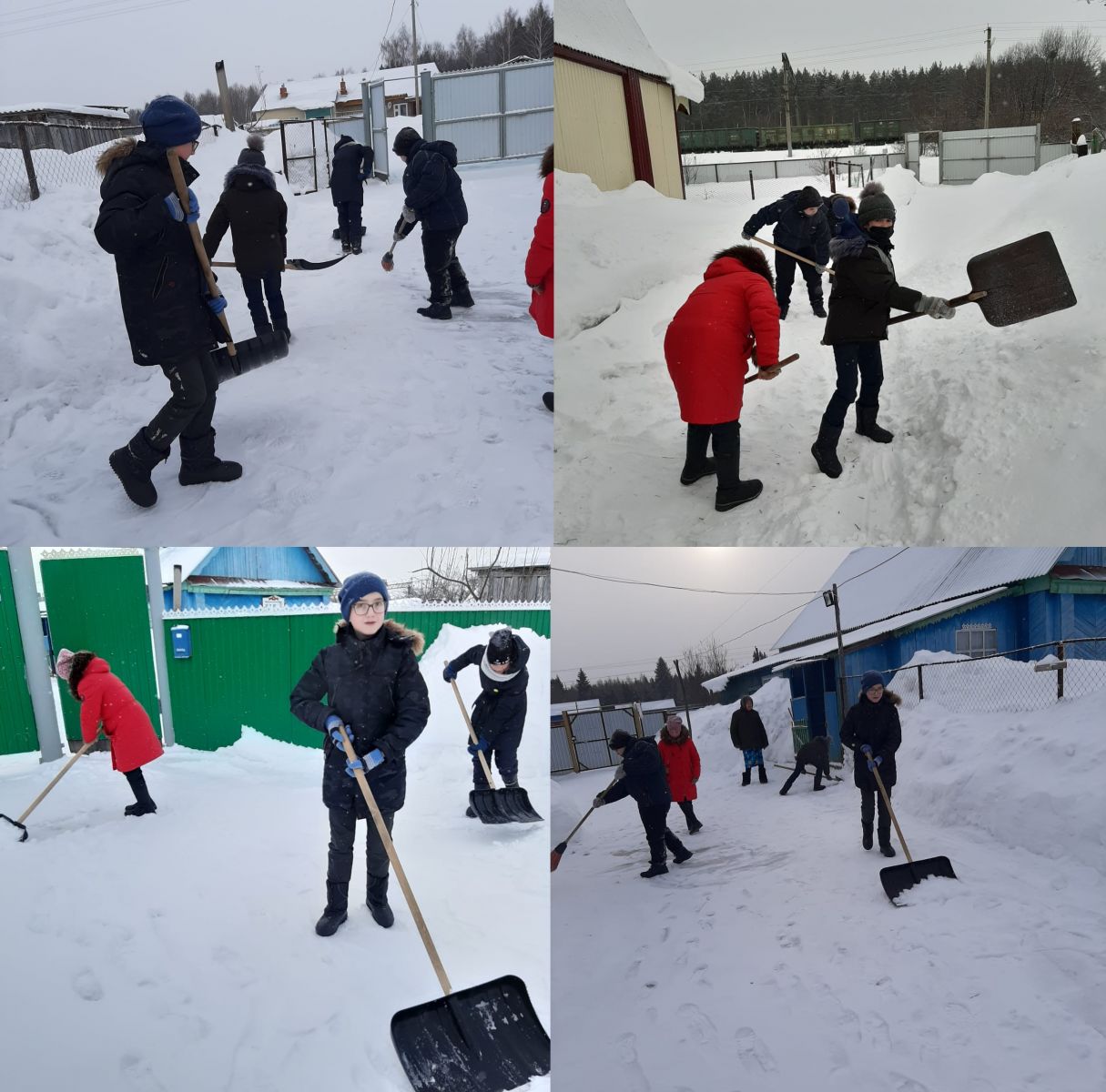 В нашей школе существует тимуровский отряд «Милосердие». В тимуровской работе в рамках военно-патриотического месячника ,ребята оказывают посильную помощь ветеранам труда, они дети – войны. Помогать пожилым людям – это то, что делает нас добрее, милосерднее, что дает нам надежду, что никто у нас не забыт. Наш тимуровский отряд оказал посильную помощь при очистке снега со двора. -