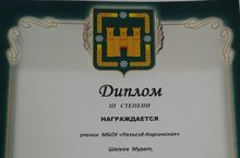 Молодцы!!! 16.04.2018 Бүген иҗади фикерле укучыларыбыз Г.Тукай исемендәге Ашытбаш урта мәктәбендә үткәрелгән “ Тукай төрле телләрдә яңгырый” конкурсында катнаштылар. 6 нчы сыйныф укучысы сертификат, 8 нче сыйныф укучысы 3 нче дәрәҗә Диплом белән бүләкләнде. Молодцы!