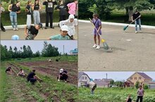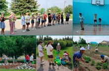 В завершении дня воспитанники лагеря труда и отдыха продолжили трудовую деятельность: полили грядки, цвточные клумбы, убирали сорняки. -