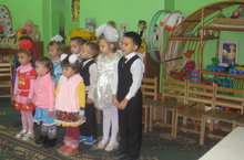 Татар теле шөгыле барышында , тәрбияче апалары сөйләгән әкиятләрне балалар бик яратып тыңлыйлар. Ә әкиятне сәхнәләштереп, шул әкият герое булып үзләре уйнаулары балаларны бигрәк тә кызыксындыра. Алар бер-берсе белән аралашып, сөйләм телләрен үстерәләр.