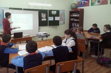 Татар теле укытучысы Гайнуллина Р.Ә. 5 нче сыйныф укучылары белән Ф.Яруллинның «Кояштагы тап» әсәре буенча дәрес күрсәтте. Рәфия Әдһәм кызы кызы укучыларның интеллектуаль күнекмәләрен ныгытты, сөйләмнәрен үстерде, аналарга, халкыбызның онытылмаслык гореф гадәтләренә хөрмәт тәрбияләде.