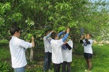 Мәктәпнең тәҗрибә участогында эш кайнап тора. Укучылар түтәлләрнең чүпләрен утыйлар, тәртипкә китерәләр. Җәй көне тырышып эшләсәк, кыш көне өстәлләребез мул булыр.