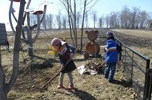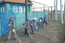 Карлар эреп бетеп килә. Мәктәп бакчасын һәм әйләнә-тирәдә чүп-чарны чистарту өчен өмәгә чыктык. Һәркем көченнән килгәнчә тырышып эшләде.