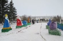 Мәктәп ишегалдында кар сыннарыннан әкият дөньясы ясадык.