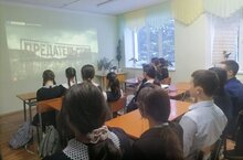 В рамках месячника ежедневно в школе проводится 10-минутный информационный блок, посвященный Великой Отечественной войне. Классный час в 6 классе.