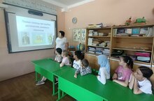 Воспитатели организовали встречу на тему «Вода — источник энергии и здоровья». Дети посмотрели фильм и создали рисунки на эту тему.